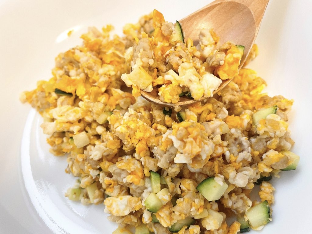 野菜と鶏むね肉がたっぷり入った食べ応えのあるチャーハンです。オートミールにも味がしっかり付くのでごはん感覚でパクパク食べられます。初心者の方におすすめのメニューです。
